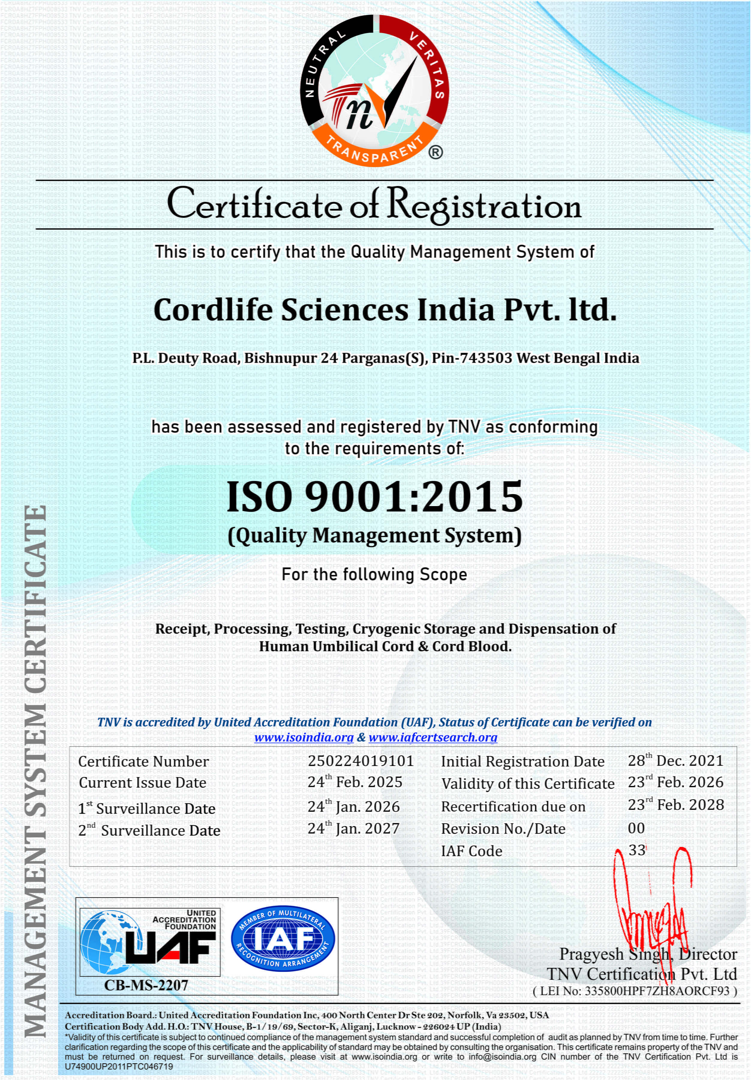 Since our inception, Cordlife adheres to the best practices and follows the stringent protocols from the collection to the processing and storage of cord blood. Cordlife has also established a quality system and proven track record of reliable cord blood banking services and transplant use track record.