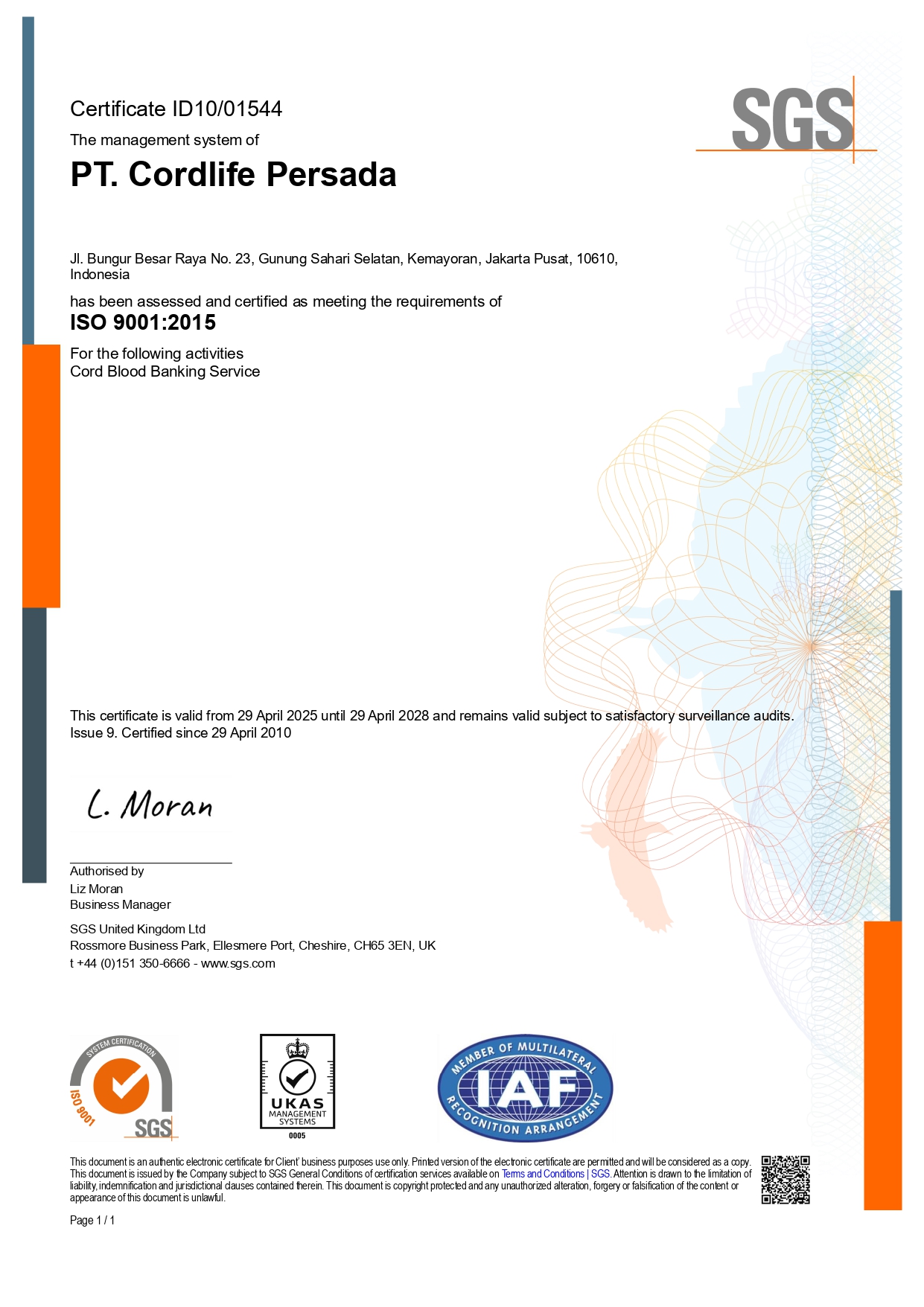 Cordlife Indonesia sebagai Bank Darah Tali Pusat Pertama di Indonesia yang Meraih Sertifikasi Global Akreditasi AABB